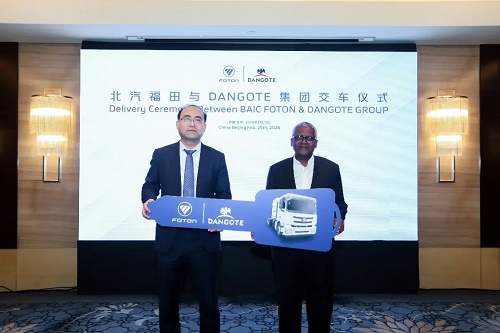 会谈结束后,双方举行了车辆交付仪式,共同见证北汽福田与丹格特集团合作迈入新阶段。此次签约的物流运输项目订单超千台,产品涉及CNG牵引车和半挂车。该批车辆将有力支撑丹格特集团在尼日利亚及非洲地区的物流运输需求,为当地基础设施建设和民生保障提供可靠运力支持。
